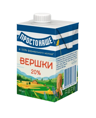 Вершки жирністю 20% використовують для приготування напоїв, коктейлів, десертів, соусів, супів-пюре, картопляного пюре, каш, запіканок, кремів, глазурі для вип …