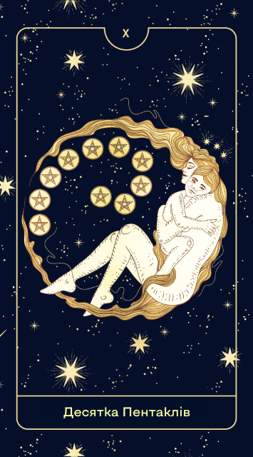 Молодший аркан «Сімка Пентаклів» Сімка Пентаклів символізує терпіння, інвестиції та оцінку власного прогресу. Вона нагадує, що важливо чекати на плоди своєї праці, а не форсувати події.